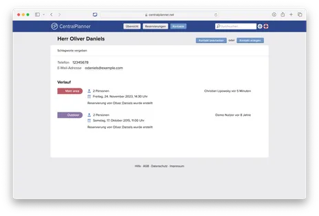 Handschriftliche Buchungskalender sind meistens unübersichtlich. Vielmehr aber entsprechen „klassische“ Reservierungsbücher nicht mehr einer modern geführten Gastronomie. Das CentralPlanner schafft für Sie die Möglichkeit den Vorgang der Reservierung zu automatisieren und somit Fehler zu vermeiden und neue Potentiale zu entdecken. So bietet das Online Reservierungsbuch CentralPlanner die Möglichkeit personen- und kundenbezogene Daten sowie Bemerkungen zu erfassen. In diesem Zuge können Sie schnell auf Situationen reagieren und Kundenwünschen bequem gerecht werden. Ein Grund hierfür ist die ständige Abrufbarkeit von CentralPlanner. Sie können jederzeit und überall auf Ihre Datenbank mit Gastdaten zugreifen, bleiben dadurch mobil und sparen sich im Arbeitsalltag wertvolle Zeit. Des Weiteren vereinfacht Ihnen der zentrale Zugriff (bspw. per Smartphone, iPad oder Laptop) Ihre Organisation des Betriebsablaufs, optimiert Ihren Service und schafft eine bessere Übersichtlichkeit. Sie können direkt bei der Reservierung Tische vergeben und so Zeit und Personalkosten einsparen. Weitere Einsparungen ergeben sich anhand von Reservierungsbestätigungen des Kunden, durch die Sie Ihre Personalplanung exakt anpassen können. Reservierungen können bequem, schnell und einfach aufgenommen, abgerufen und nachvollzogen werden.