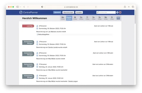 Ihr Hotel-Restaurant wird regelmäßig von Gästen Ihres Hotels und externen Gästen besucht? Mit einem handschriftlichen Reservierungsbuch geraten Sie hier schnell an Grenzen. CentralPlanner ist eine moderne Software zur Verwaltung der Reservierungen in Ihrem Hotel. Unser Reservierungsbuch bietet Ihnen die Möglichkeit die Reservierungen in Ihrem Restaurant zu automatisieren, um kundenbezogene Daten zu erfassen und allen beteiligten Personen zugänglich zu machen. So sind Sie besser informiert und können Ihren Gästen besser gerecht werden. Stammgäste Ihres Hotels werden auch Stammgäste Ihres Restaurants und selbst neue Kollegen wissen direkt über die individuellen Wünsche der Gäste Bescheid. Überzeugen Sie sich selbst und probieren Sie es kostenlos aus.